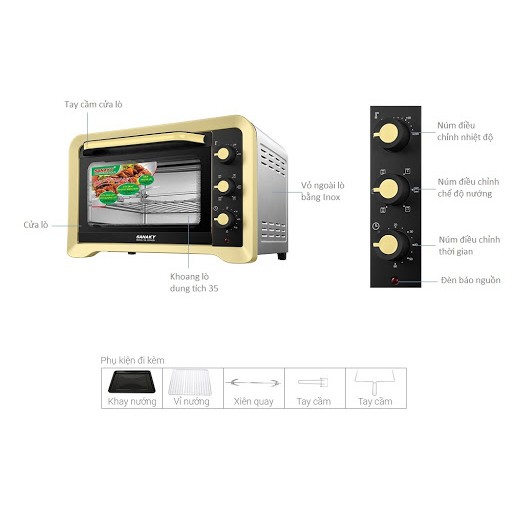 Giới thiệu [Mã ELHADEV giảm 4% đơn 300K] Lò nướng SANAKY, 35L vỏ Inox VH-359N2D