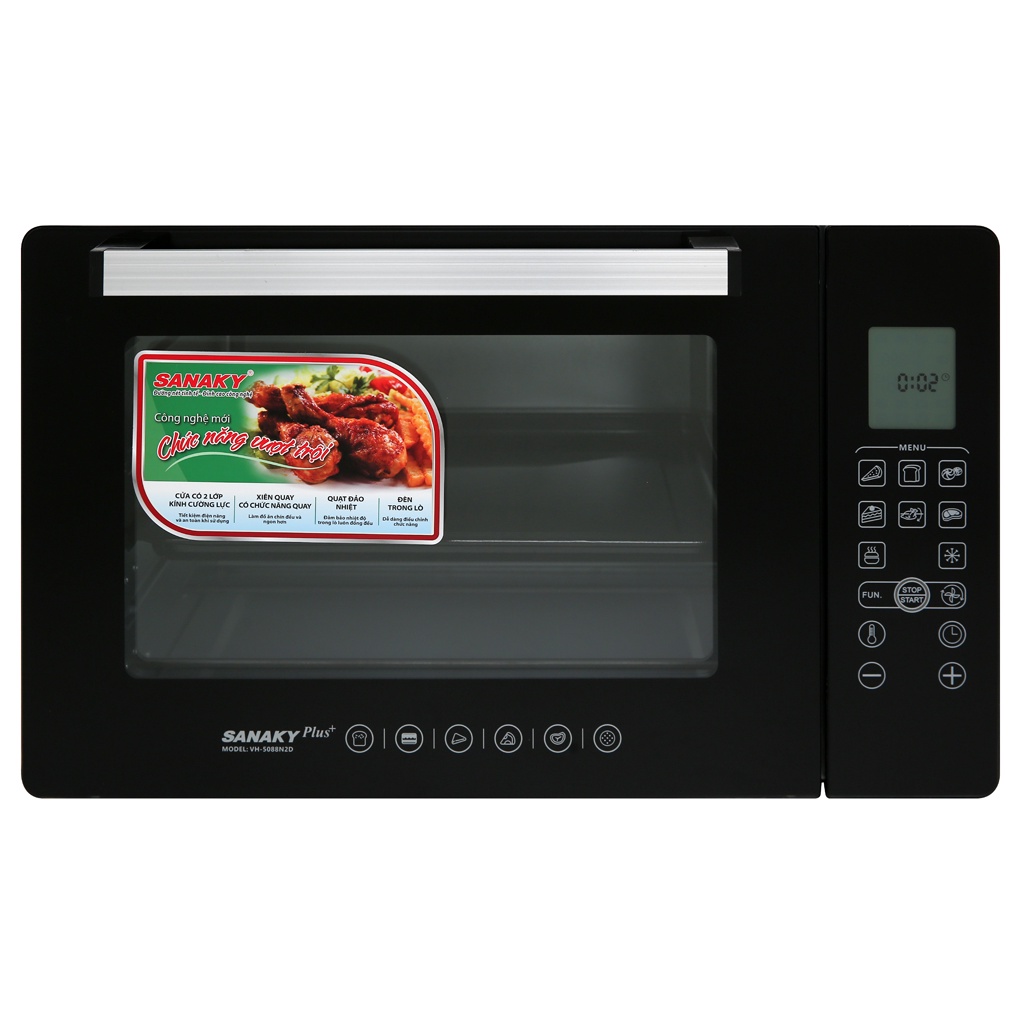 - Lò nướng Sanaky VH 5088N2D 50 lít thương hiệu uy tín, chất lượng, thiết kế hiện đại đẹp mắt cùng màn hình hiển thị, nút bấm cảm ứng... xứng đáng là trợ thủ đắc lực cho các món nướng của gia đình bạn.