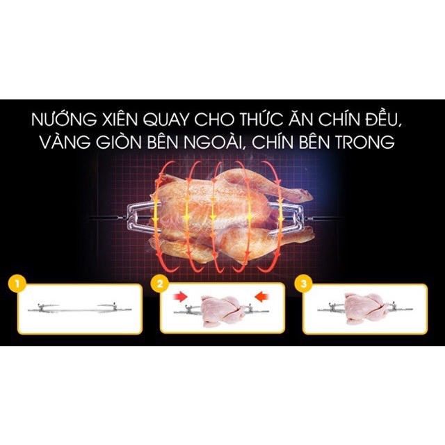 Phụ kiện bao gồm Xiên, khay hứng mở, vỉ nướng, tay