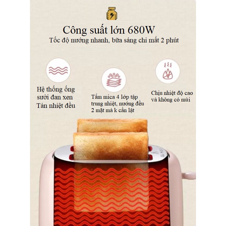 Lò nướng bánh Sandwich Bear hoạt động mạnh mẽ với công suất 680W, giúp nướng bánh mì nhanh giòn, thơm ngon, bạn sẽ có bữa ăn sáng nhanh chóng để bắt đầu một ngày làm việc mới.Nhiều chế độ nướng