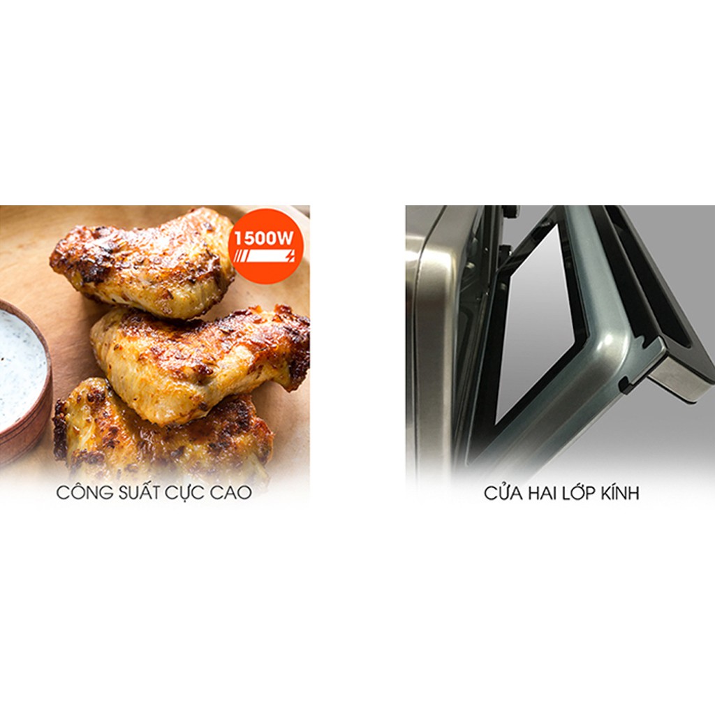 Lớp cửa kính được trang bị 2 lớp có khả năng chịu nhiệt tốt, an toàn cho người sử dụng. Cấu tạo cửa kính tốt còn hỗ trợ duy trì nhiệt trong lò nướng ổn định trong suốt quá trình nướng.