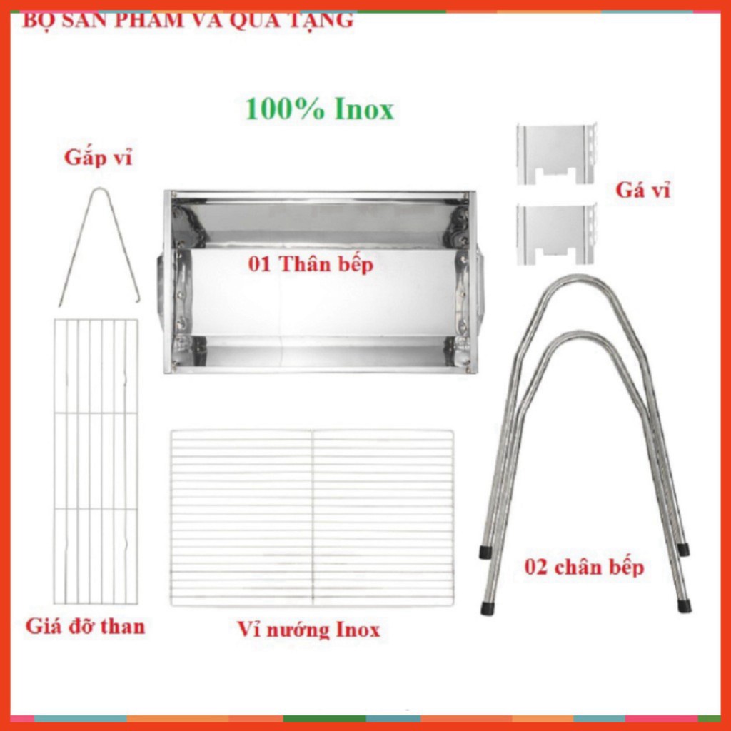 ☘ 01 bếp nướng than hoa Inox (Dài*Rộng*Cao = 49x30x57 cm)