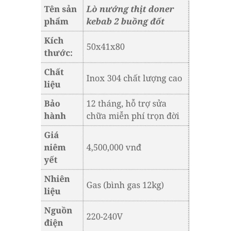 Thiết Bị Điện Gia Dụng > Đồ gia dụng nhà bếp > Lò vi sóng || Lò nướng thịt bánh mì Doner Kebab 2 buồng đốtCòn hàng
