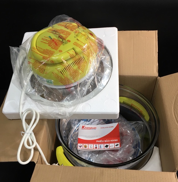 - Linh kiện theo kèm bộ lò: Vòng inox mở rộng nâng thể tích lò, vĩ inox cao & thấp, 1 kẹp đế, 1 chảo chiên inox,