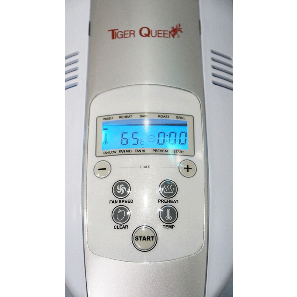 Lò nướng điện tử thủy tinh hiệu Tiger Queen nướng đối lưu từ 65-260ºC, màn hình LCD, đồng hồ cài đặt 9 giờ 59 phút, quạt 3 tốc độ, chậu thủy tinh Pháp, màu trắng. Có nhiều chức năng : Quay, nướng, nướng bánh, hấp, khử nước, xả đông, chiên chân không….• Xuất xứ : Made In China