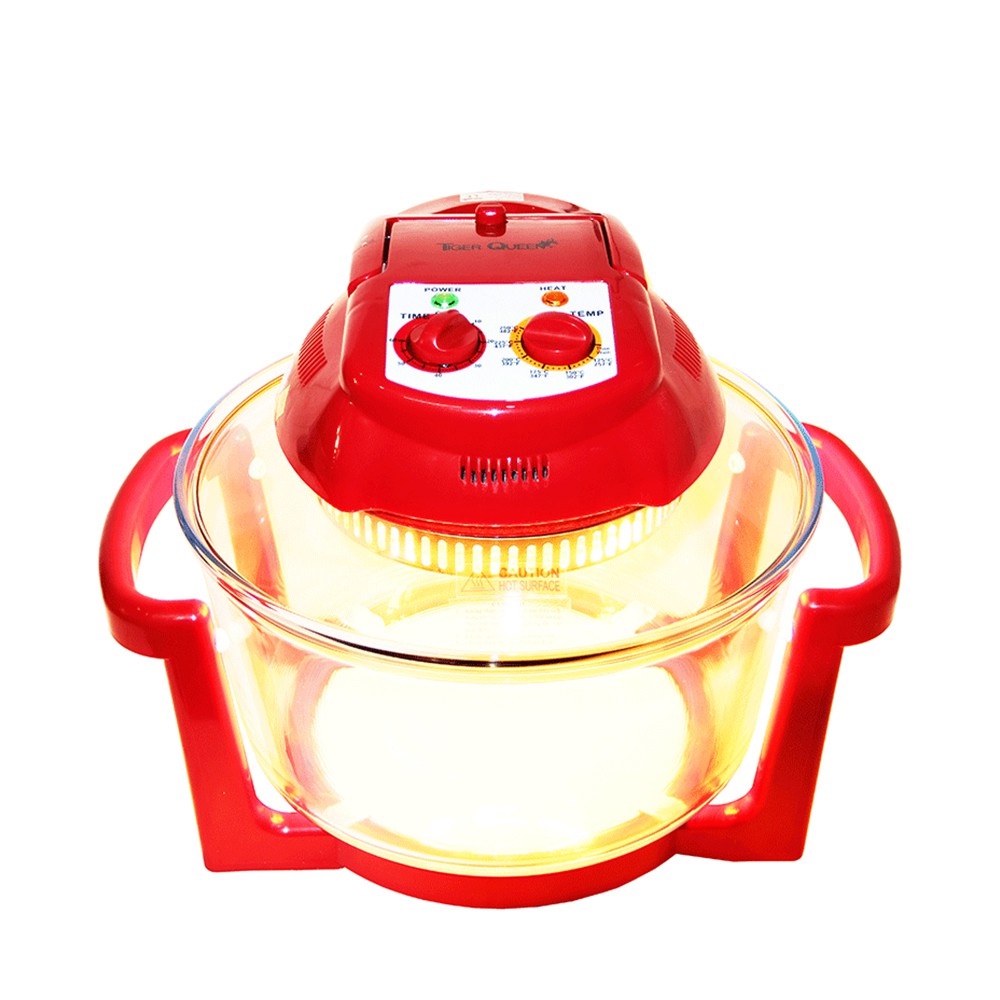 Lò nướng thủy tinh đèn Halogen hiệu Tiger Queen nướng đối lưu từ 60 – 250ºC, đồng hồ cài đặt 60 phút, quạt 1 tốc độ, có chế độ tự vệ sinh của lò nướng, chậu thủy tinh Pháp, màu trắng. Có nhiều chức năng : Quay, nướng, nướng bánh, hấp, khử nước, xả đông, chiên chân không….• Xuất xứ : Made In China