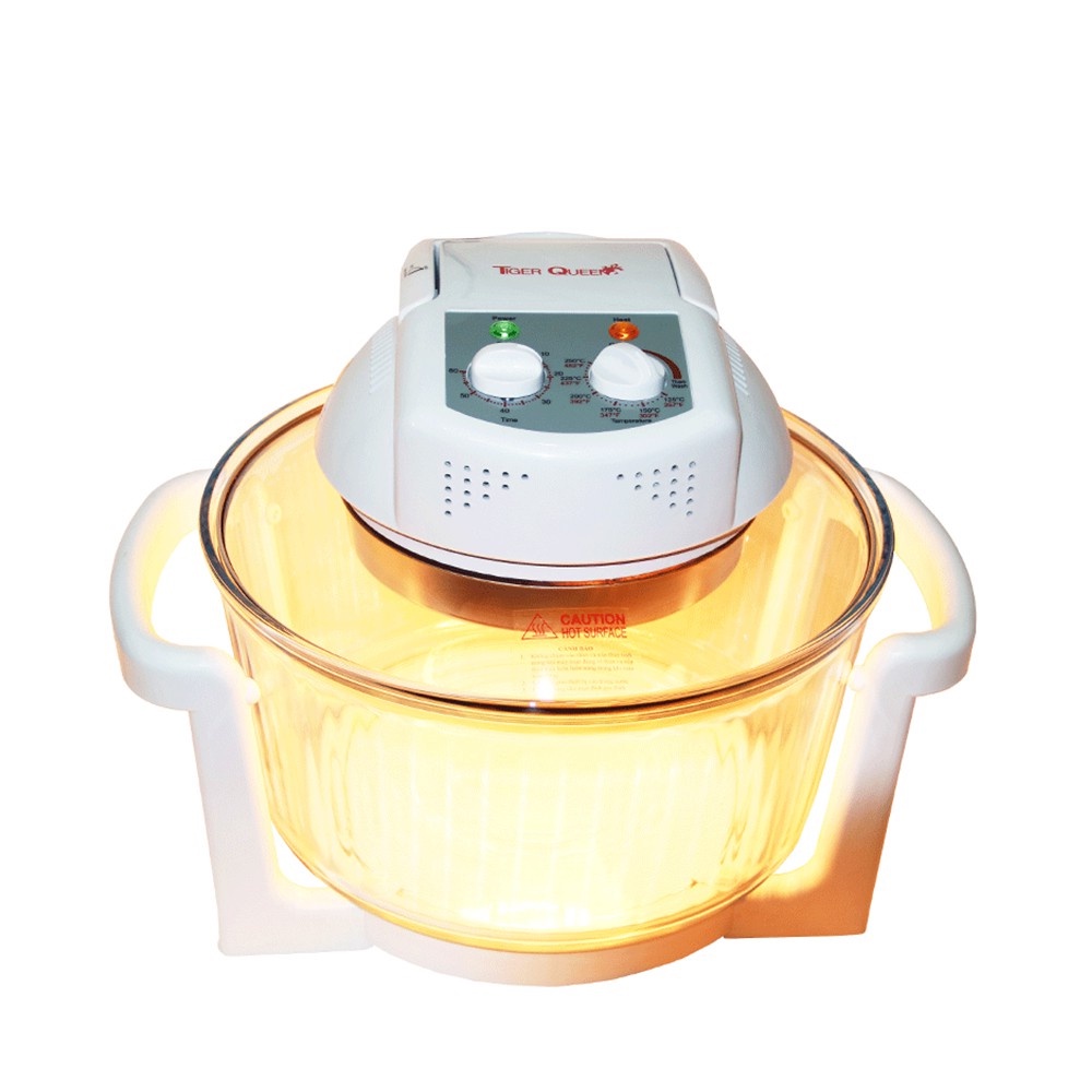 Lò nướng thủy tinh đèn Halogen hiệu Tiger Queen nướng đối lưu từ 60 – 250ºC, đồng hồ cài đặt 60 phút, quạt 1 tốc độ, có chế độ tự vệ sinh của lò nướng, chậu thủy tinh Pháp, màu trắng. Có nhiều chức năng : Quay, nướng, nướng bánh, hấp, khử nước, xả đông, chiên chân không….• Xuất xứ : Made In China