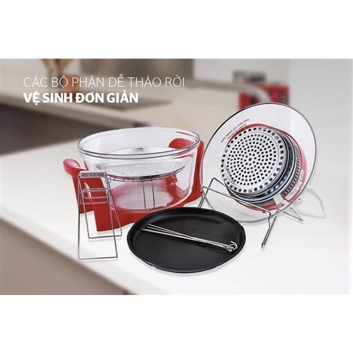 thiết kế đẹp mắt với chất liệu thủy tinh trong suốt cùng chất liệu nhựa cao cấp màu đỏ. Sản phẩm sẽ nhanh chóng làm chín thức ăn mà không làm mất hương vị và chất dinh dưỡng thức ăn. Với dung tích 12L, bạn có thể tha hồ chế biến thức ăn trong các bữa tiệc nhỏ.