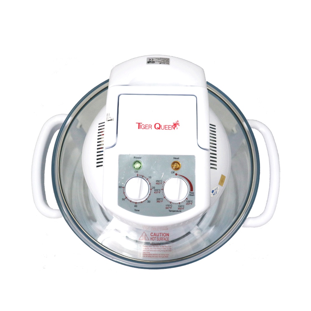 Lò nướng thủy tinh hiệu Tiger Queen nướng đối lưu từ 65 – 250ºC, đồng hồ cài đặt 60 phút, quạt 1 tốc độ, có chế độ tự vệ sinh của lò nướng, chậu thủy tinh Trung Quốc, Có 2 màu: màu trắng và màu vàng. Có nhiều chức năng : Quay, nướng, nướng bánh, hấp, khử nước, xả đông, chiên chân không….• Xuất xứ : Made In China