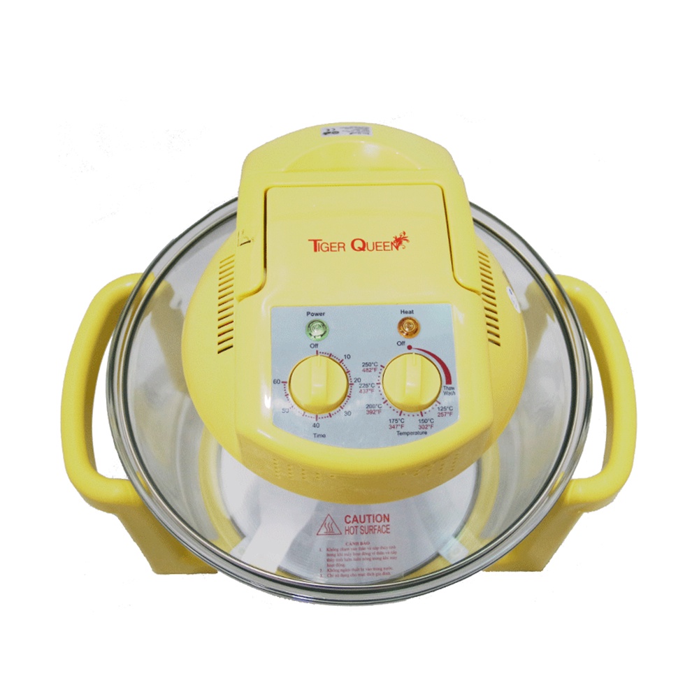 Lò nướng thủy tinh hiệu Tiger Queen nướng đối lưu từ 65 – 250ºC, đồng hồ cài đặt 60 phút, quạt 1 tốc độ, có chế độ tự vệ sinh của lò nướng, chậu thủy tinh Trung Quốc, Có 2 màu: màu trắng và màu vàng. Có nhiều chức năng : Quay, nướng, nướng bánh, hấp, khử nước, xả đông, chiên chân không….• Xuất xứ : Made In China
