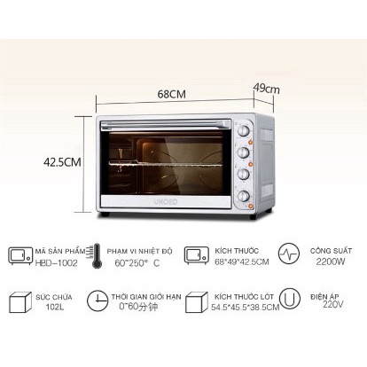 Giới thiệu Lò nướng UKOEO 102 Lít - Hàng Chính Hãng - Lò nướng gia đình, nướng bánh, nướng gà, đa năng tiện lợi