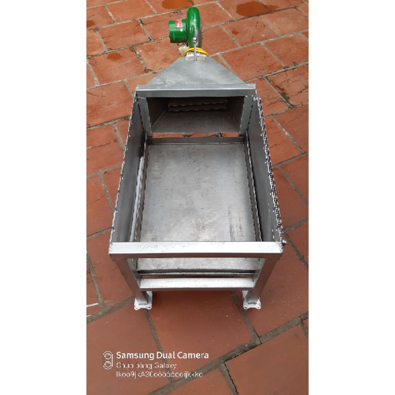 - Máy nướng dùng mô tơ tự động nên các bạn chỉ cần đốt than, cắm điện là máy và quạt hoạt động.