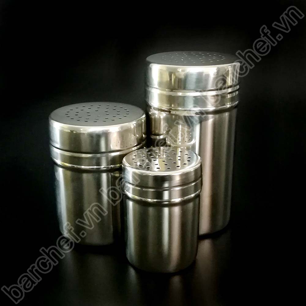 Lọ Rắc Bột InoxLọ rắc với mắt lưới ở phần nắp đậy, giúp nguyên liệu được rây mịn, không vón cục.