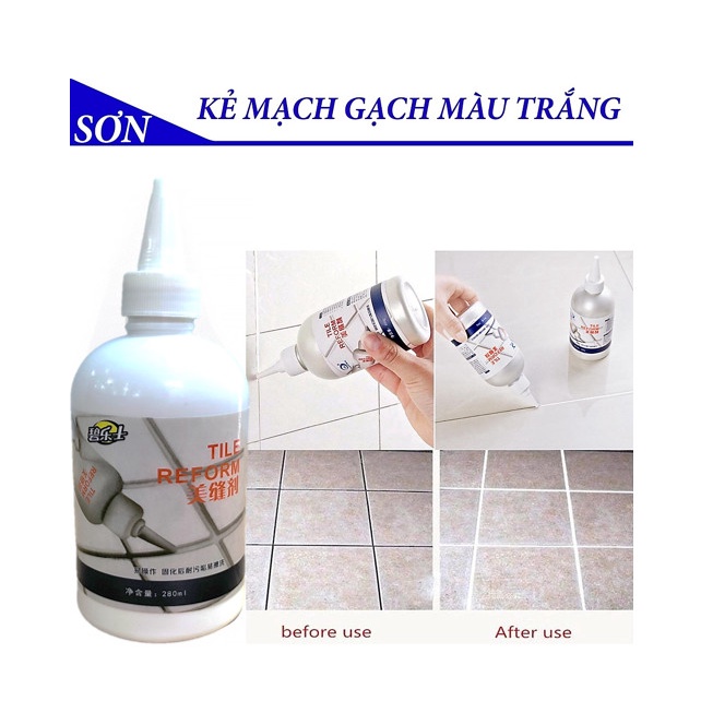 Lọ Sơn Kẻ Chỉ Gạch Dung Tích 280ml Tiện DụngSơn chỉ gạch dùng ở mọi nơi: trong phòng bếp, phòng tắm, phòng khách, tường ốp gạch, sàn lát gạch... đều được.