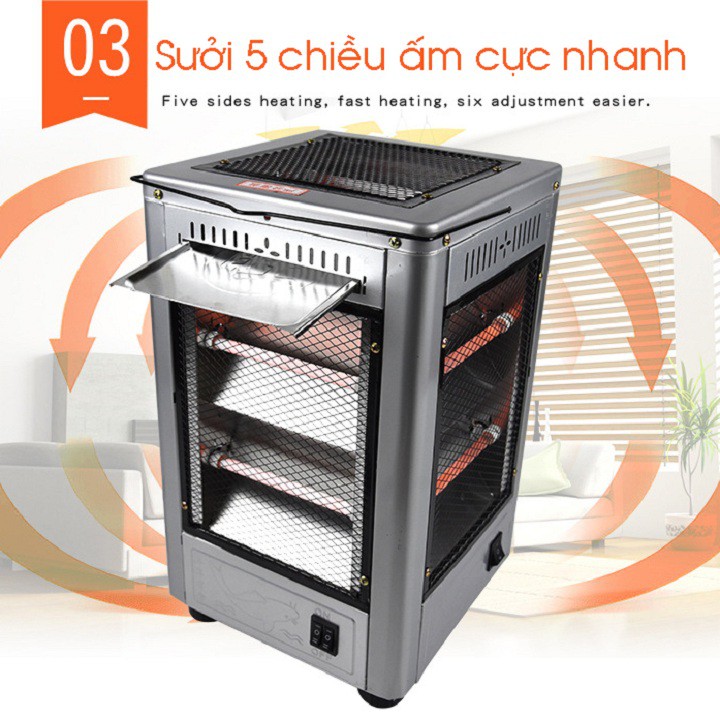 lò sưởi-Lò nướng--Lò sưởi kiêm nướng-Lò sưởi đa năng-Máy sưởi đa năng-Máy sưởi 5 chiều-máy sưởi điện