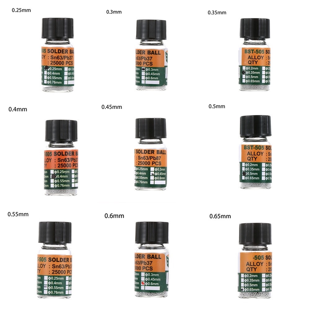 Nhà cửa & Đời sống > Dụng cụ & Thiết bị tiện ích > Dụng cụ > Dụng cụ hàn điện || Lọ thiếc(chì) hàn dạng bi BST-505 Sn63/Pb37 183°C chất lượng cao làm chân eMMC, RAMCòn hàng