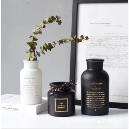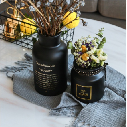 Lọ thủy tinh cắm hoa chữ mạ vàng Scandinavian phong cách Bắc Âu, trang trí nhà cửa
