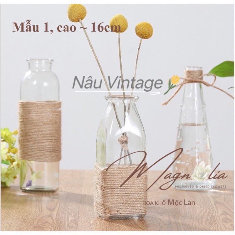 Giới thiệu Lọ thủy tinh cắm hoa khô gam màu pastel quấn thừng trang trí vintage
