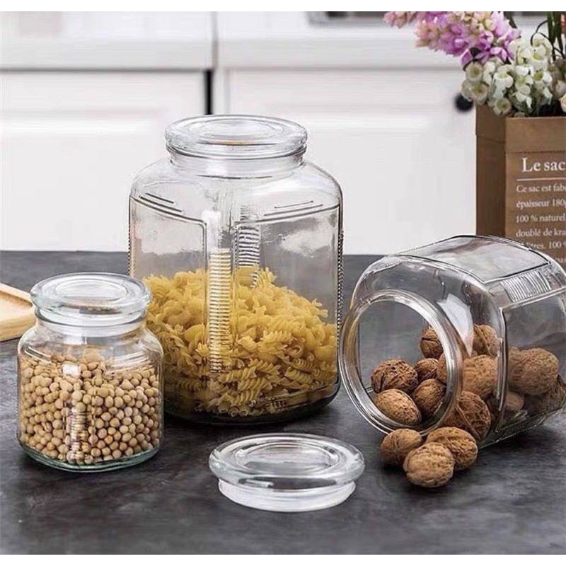 Nhà cửa & Đời sống > Bộ đồ bàn ăn > Bình nước & phụ kiện || lọ thủy tinh ,hộp đựng đường nắp có doăng kín 3 cỡCòn hàng