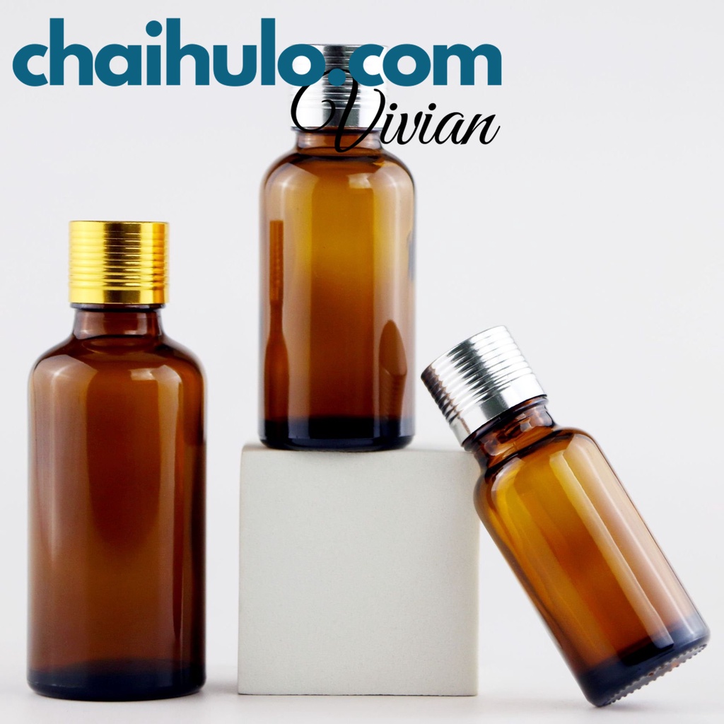 Nhà cửa & Đời sống > Chất khử mùi, làm thơm nhà > Khác || Lọ thủy tinh, lọ đựng tinh dầu serum thân nâu nắp vặn nhôm vàng trơn nhỏ giọt đủ mọi dung tíchCòn hàng