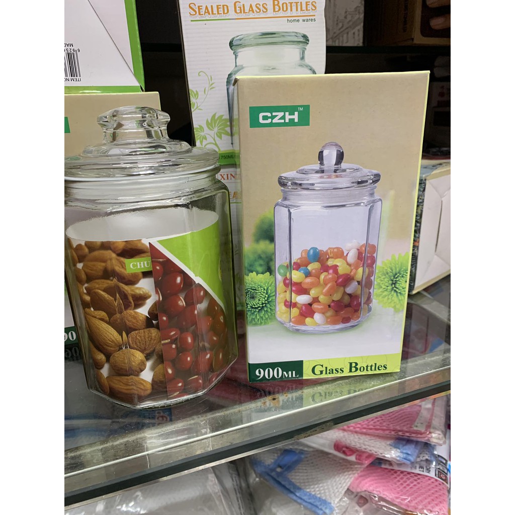 Lọ thủy tinh lục giác 900ml #1720Lọ dùng đựng đường, muối, gia vị, các loại hạt