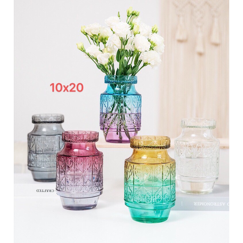 Nhà cửa & Đời sống > Trang trí nhà cửa > Bình trang trí || Lọ thủy tinh màu pha họa tiết VintageCòn hàng