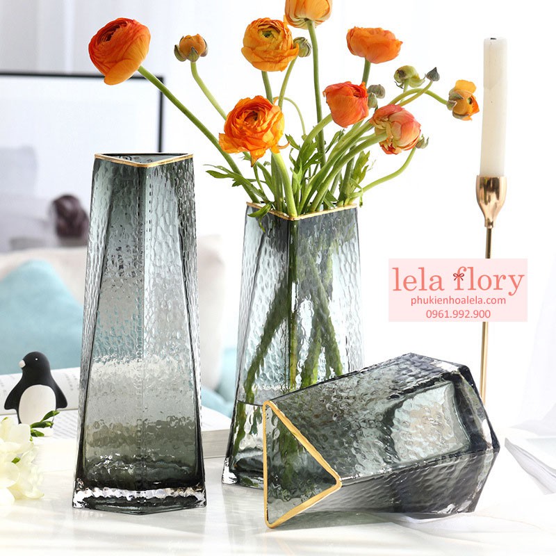 Nhà cửa & Đời sống > Trang trí nhà cửa > Bình trang trí || LỌ THỦY TINH MIỆNG TAM GIÁC VIỀN ĐỒNG CÓ SIZE - LOH0401/LOH0402/LOH0403Còn hàng