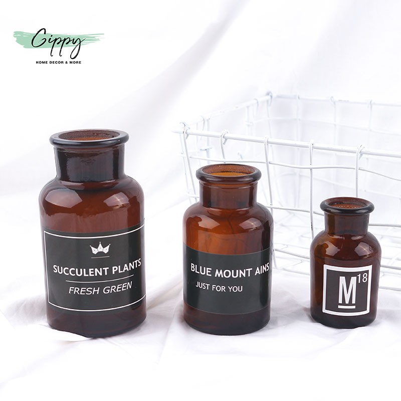 Lọ thủy tinh nhiều màu, nhiều kích thước - phụ kiện trang trí chụp hìnhMàu sắc: Trắng - Nâu đen