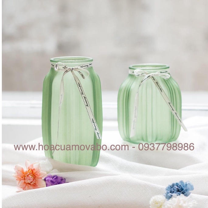 Lọ Thuỷ Tinh Nơ Đa Giác Nhiều Màu Merber (Mơ Bơ) - Decor Trang Trí Phòng Khách Cắm Hoa Lụa Hoa Tươi