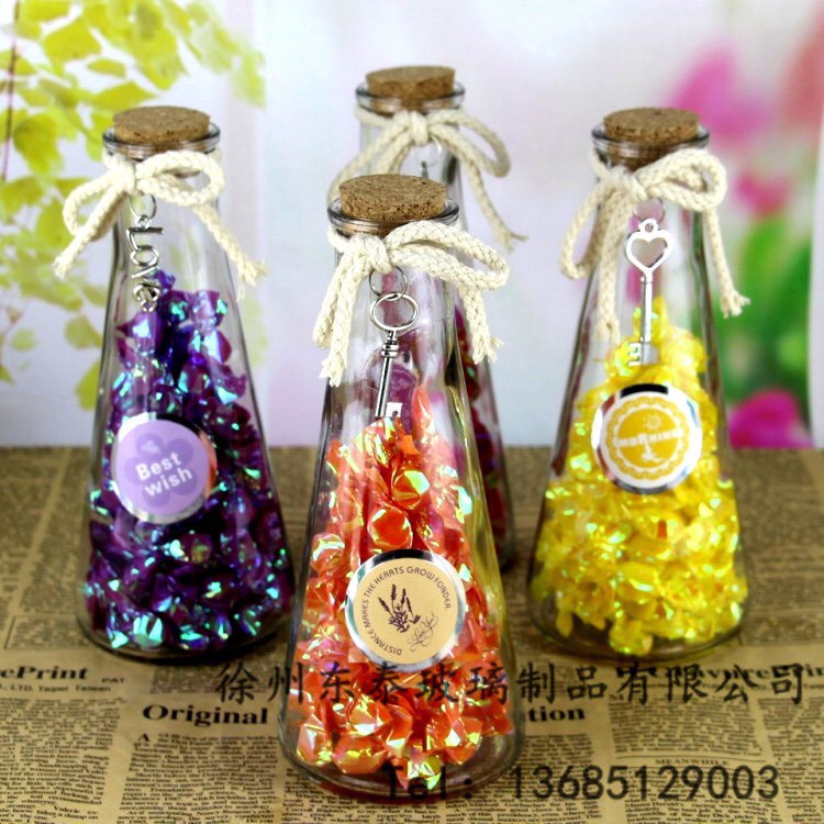Giới thiệu Lọ thủy tinh trang trí hình tam giác nút gỗ, lọ hoa thủy tinh vintage hình nón, chai nón nút bần dung tích 350ml