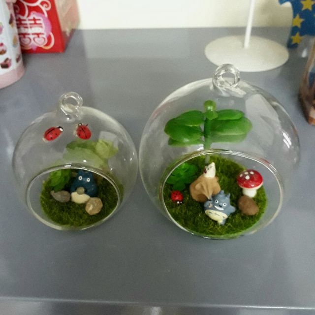 Lọ thủy tinh cầu tròn trang trí sẵn hình Totoro đáng yêu với thảm cỏ, cây xanh.Có 3 size: