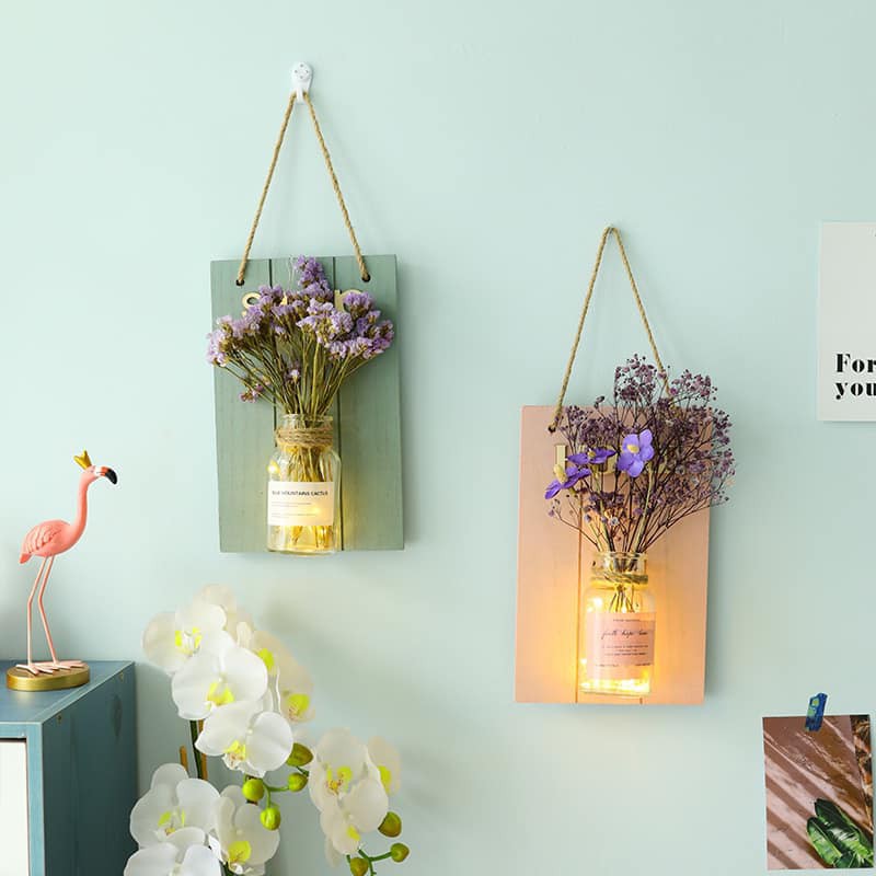 Lọ thủy tinh sẽ đẹp hơn và bắt mắt hơn nếu bạn đặt một vài viên sỏi vào trong hoặc thả dây đèn khi cắm hoa khô