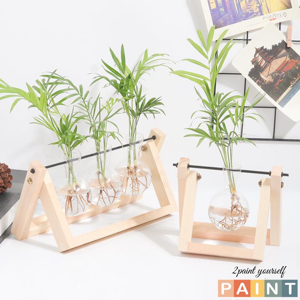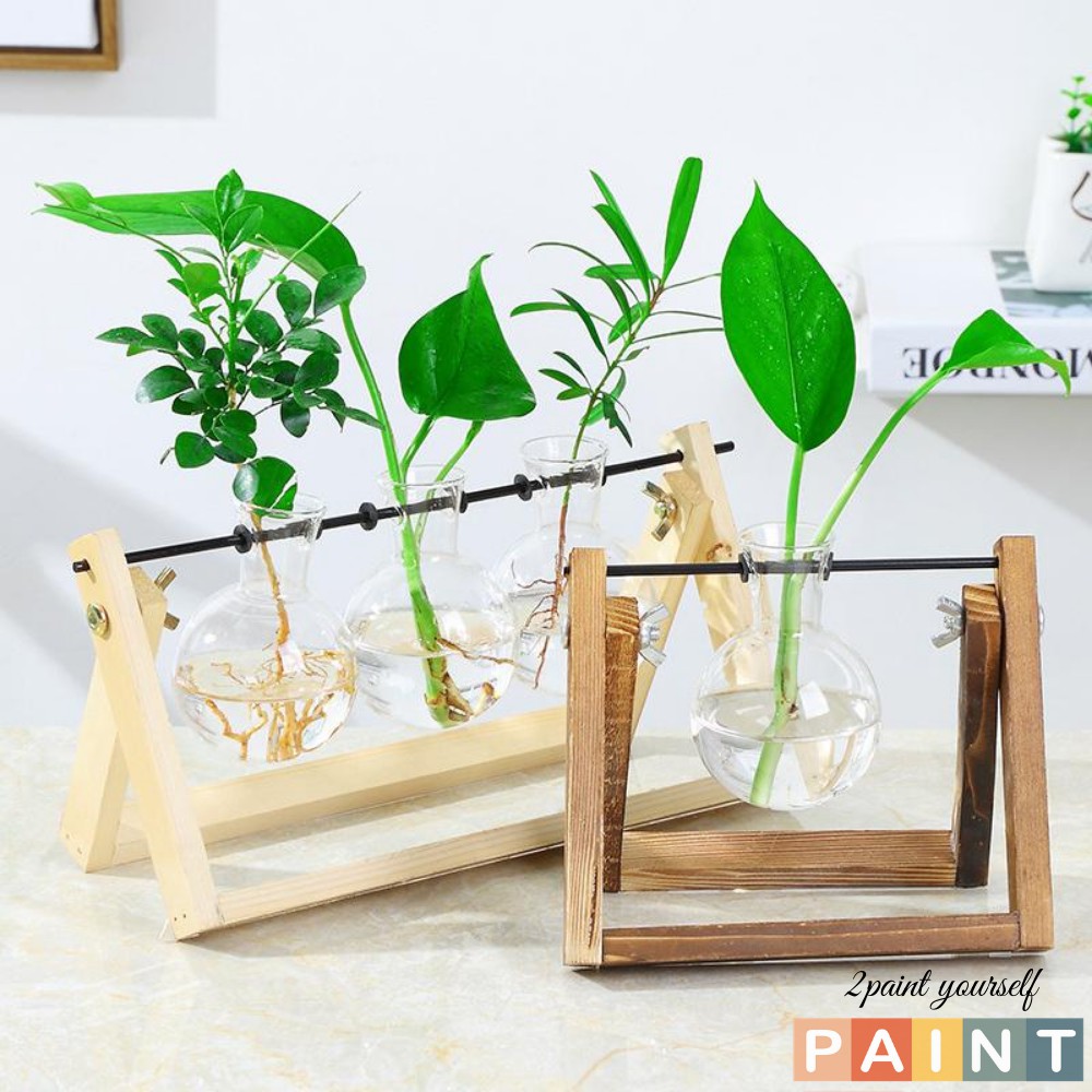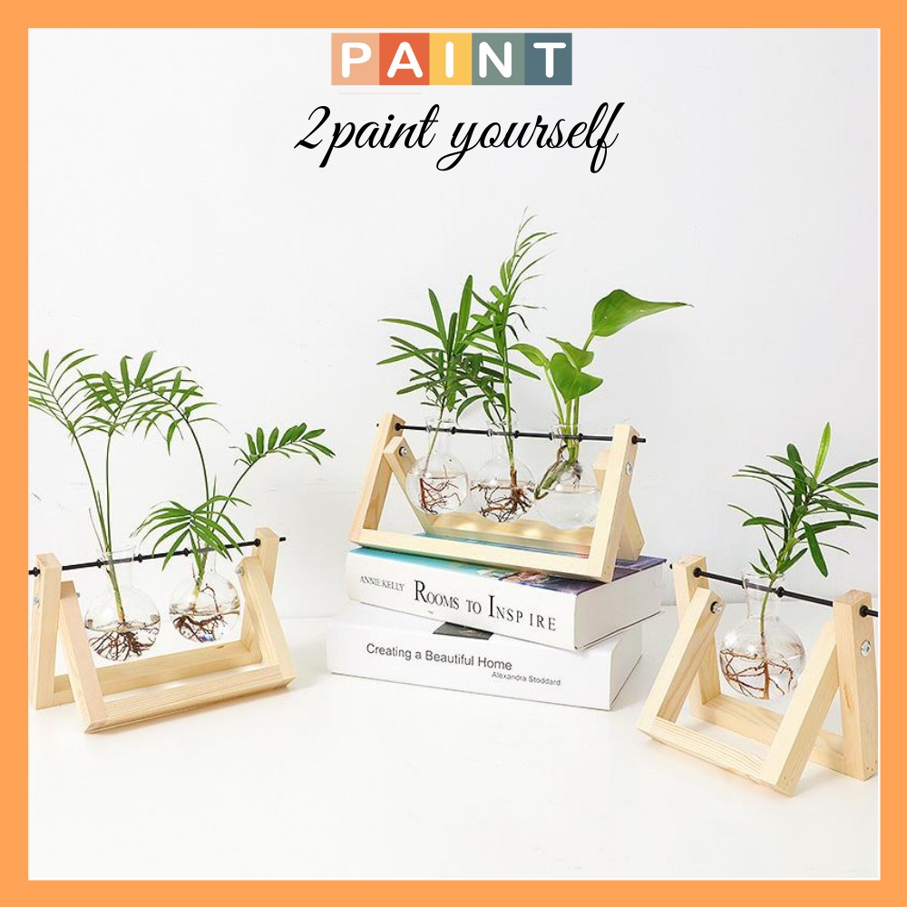 Nhà cửa & Đời sống > Làm vườn > Chậu cây || Lọ thủy tinh trồng cây thủy canh đế gỗ, decor trang trí để bàn 2PaintCòn hàng