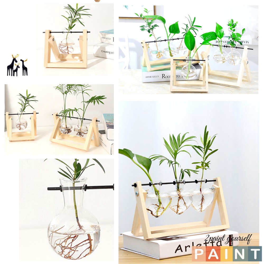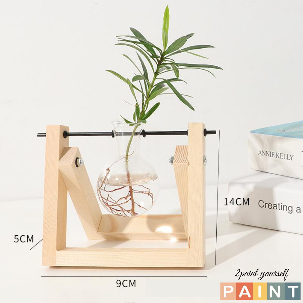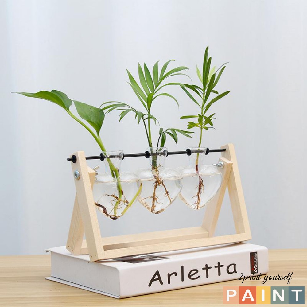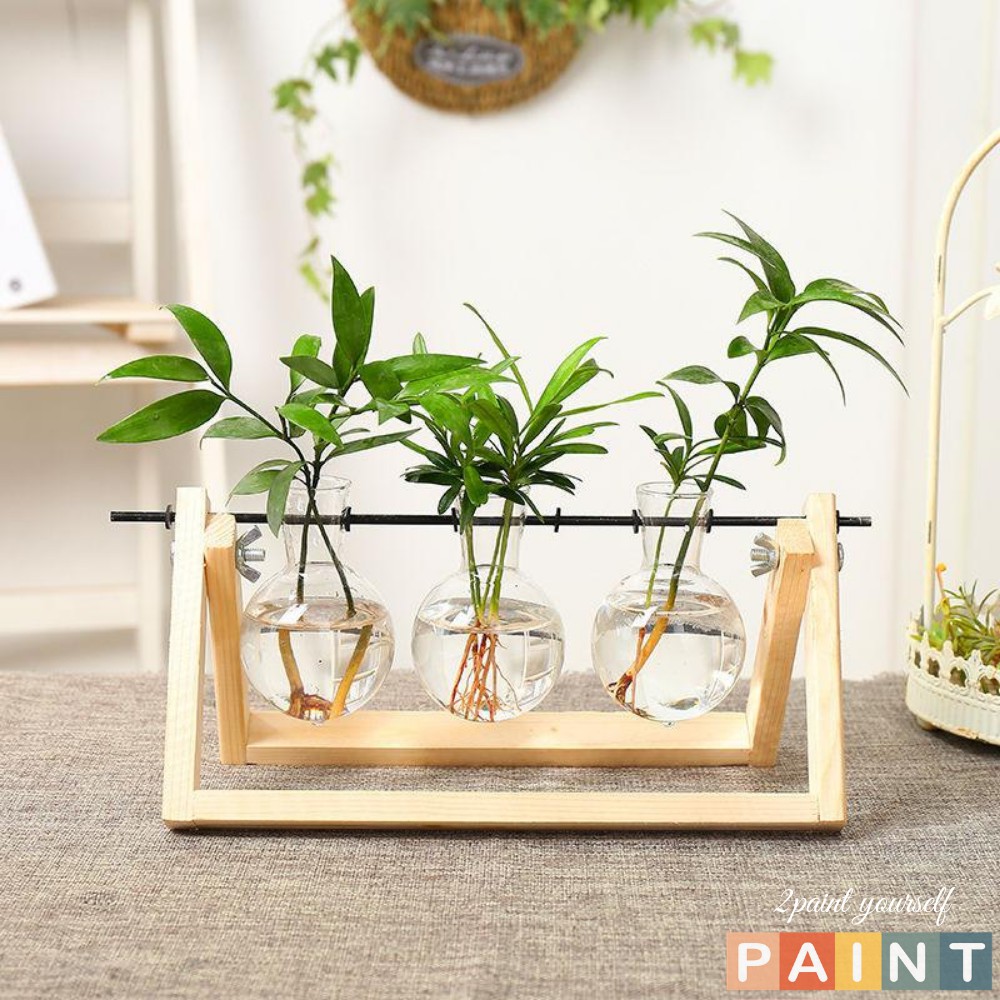 Nhà cửa & Đời sống > Làm vườn > Chậu cây || Lọ thủy tinh trồng cây thủy canh đế gỗ, decor trang trí để bàn 2PaintCòn hàng