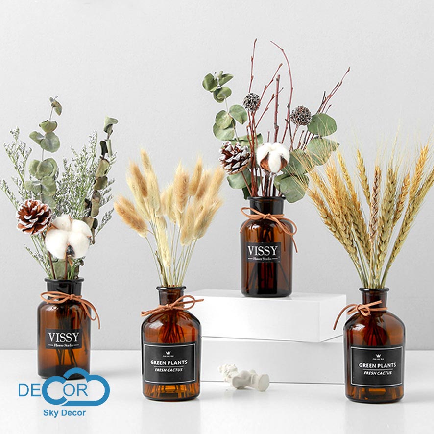 👉 Chất liệu : Thuỷ tinh, hoa khô
