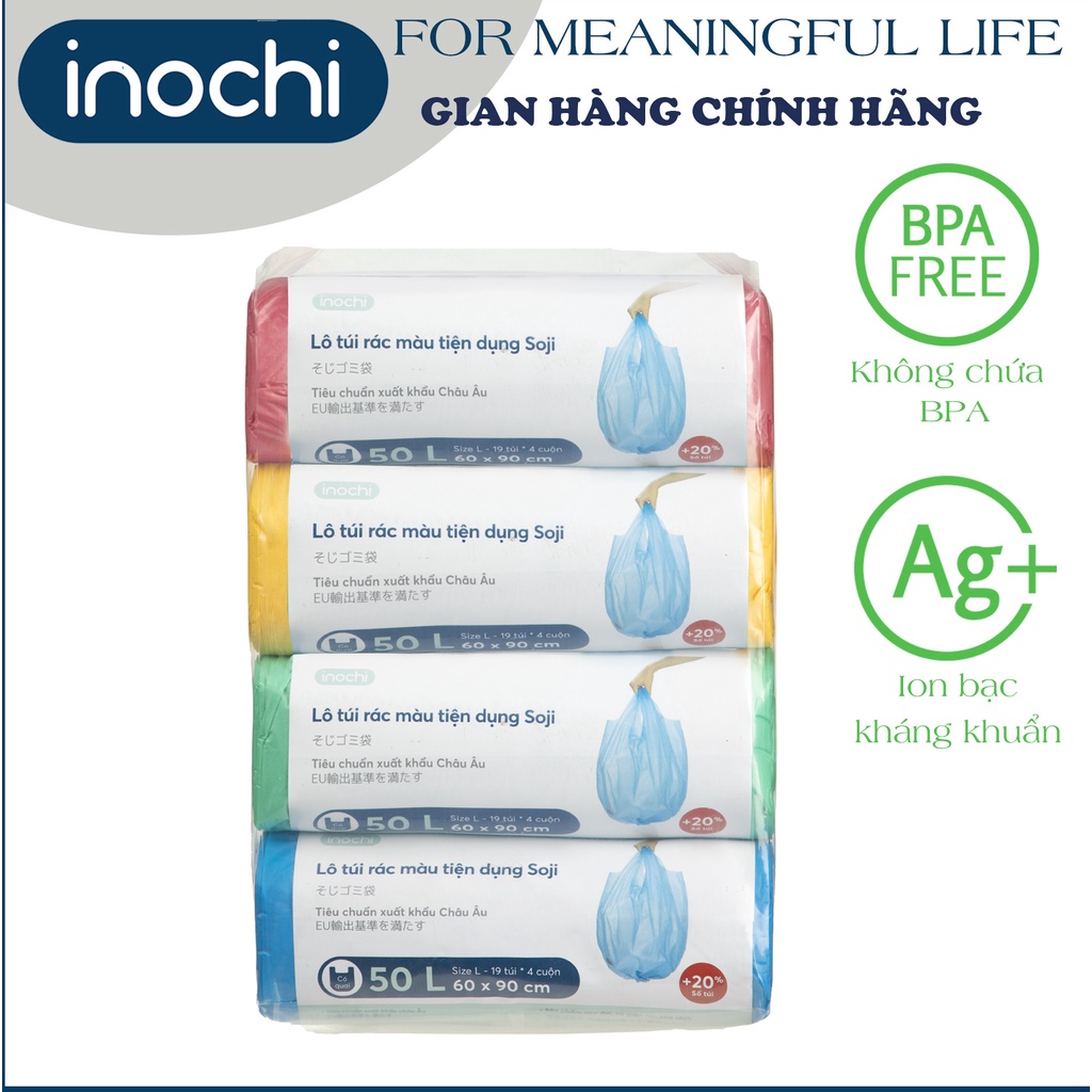 Nhà cửa & Đời sống > Dụng cụ chăm sóc nhà cửa > Túi nilon & túi rác || Lô túi rác MÀU tiện dụng Inochi Soji 4 x 50LCòn hàng