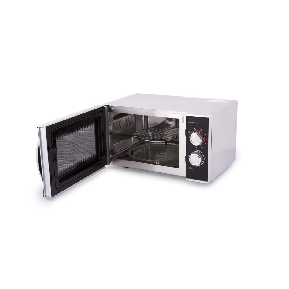 Khoang lò được làm từ thép tráng men an toàn cho sức khỏe, sáng đẹp, ít bám bẩn. Đi kèm là trục xoay và đĩa thủy tinh xoay tròn linh hoạt, giúp thực phẩm được làm nóng đều, ngon.