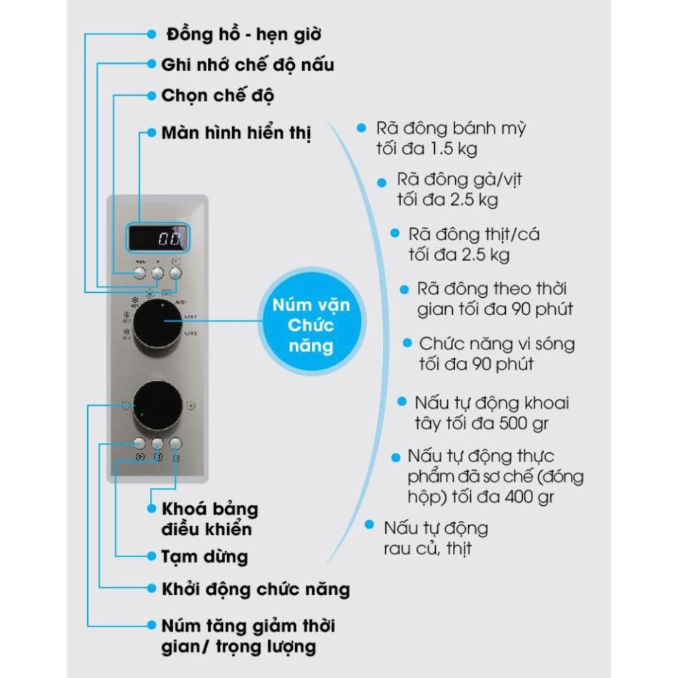 - Chức năng an toàn: Chức năng vi sóng 30 giây và khóa an toàn trẻ em trên bảng điều khiển
