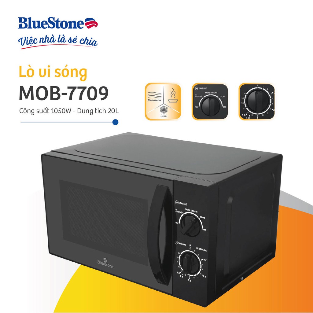 Thiết Bị Điện Gia Dụng > Đồ gia dụng nhà bếp > Lò vi sóng || Lò vi sóng BlueStone MOB-7709 - Dung tích 20L, công suất 1050w, bảo hành chính hãng 2 nămCòn hàng