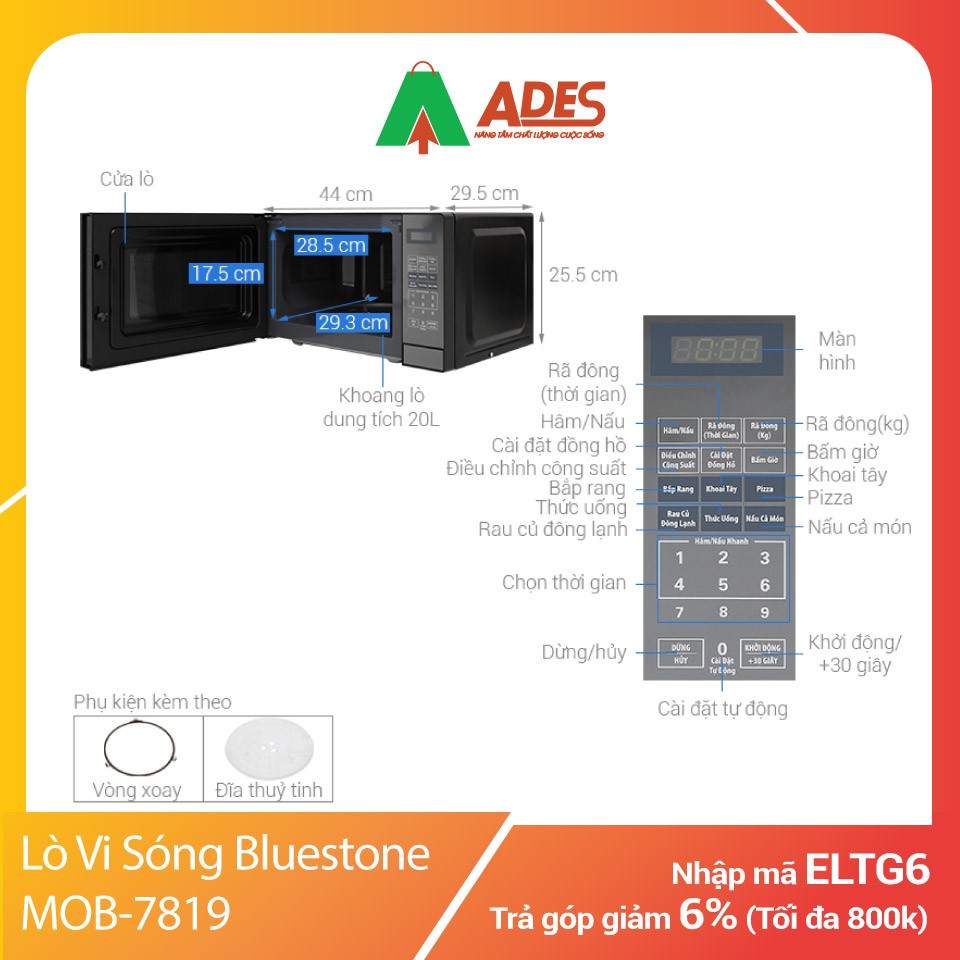[Mã 154ELSALE2 giảm 7% đơn 300K] Lò Vi Sóng Bluestone MOB-7819 | Chính Hãng, Giá Rẻ