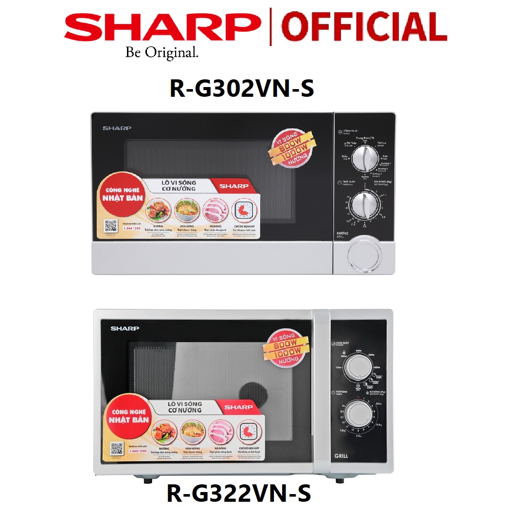 Lò vi sóng Sharp R-G302VN: 3 chức năng cơ bản là nấu, hâm nóng, rã đông với công suất vi sóng đến 800 W; kèm thêm chức năng nướng tiện dụng với công suất nướng đến 1000 W, hỗ trợ phục vụ các món nướng đơn giản cho gia đình