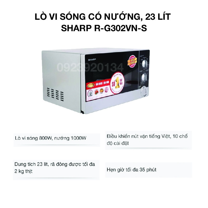 Giới thiệu [Mã ELHADEV giảm 4% đơn 300K] Lò vi sóng có nướng, 23 lít Sharp R-G302VN-S