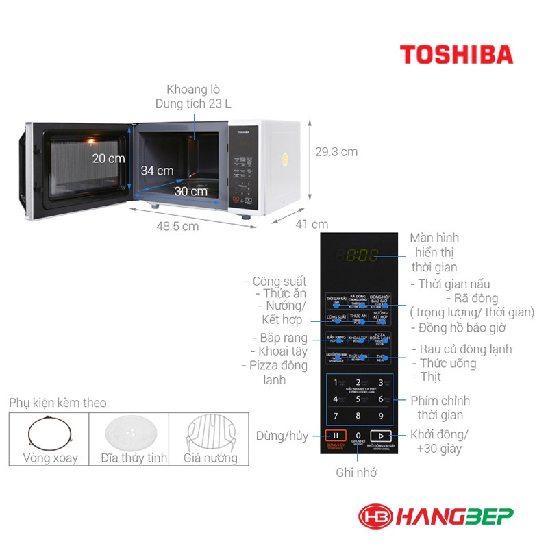 🧡THÔNG TIN LÒ VI SÓNG CÓ NƯỚNG 23 LÍT TOSHIBA ER-SGS23(S1)VN