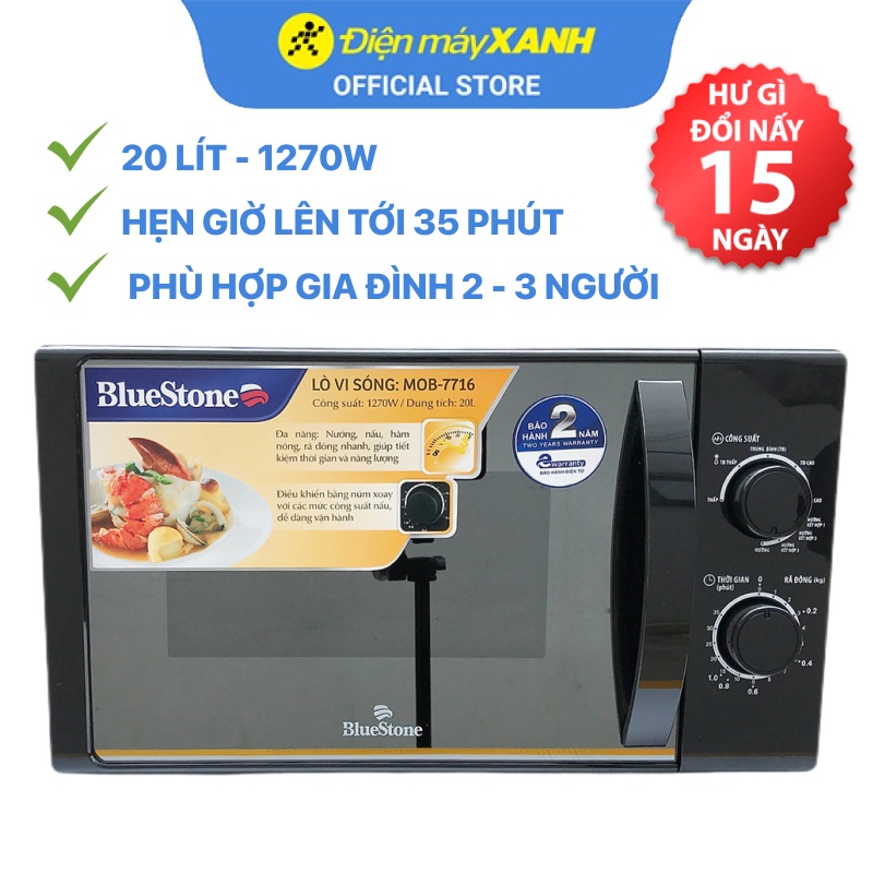 Thiết Bị Điện Gia Dụng > Đồ gia dụng nhà bếp > Lò vi sóng || [Mã ELMALL150 giảm 8% đơn 500K] Lò vi sóng có nướng BlueStone MOB-7716 20 lít 1270 W - Chính hãng BH 2 nămCòn hàng