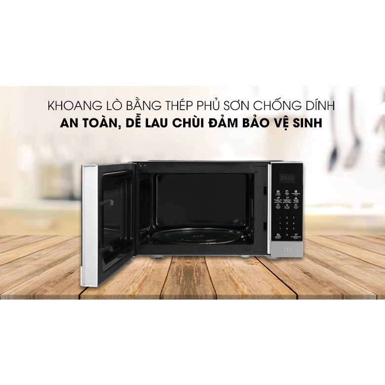Lò vi sóng có nướng với khoang lò bằng thép phủ sơn chống dính nấu nướng thực phẩm an toàn, dễ lau chùi đảm bảo vệ sinh