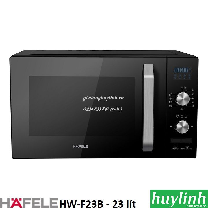 - Lò vi sóng có nướng Hafele HW-F23B là dòng lò vi sóng đa công năng, không những hâm nóng, rã đông thức ăn mà sản phẩm còn tích hợp chế độ nướng đối lưu cùng với nhiều thực đơn nấu tự động. Lò sỡ hữu kiểu dáng đơn giản, trang nhã cùng với dung tích lò lên đến 23L, thích hợp cho những gia đình 4 - 5 người.