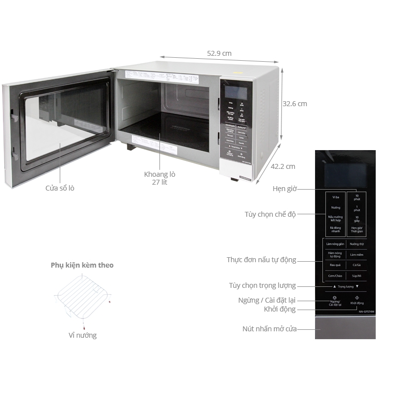Giới thiệu [Mã ELHADEV giảm 4% đơn 300K] Lò vi sóng có nướng Panasonic PALM-NN-GF574MYUE