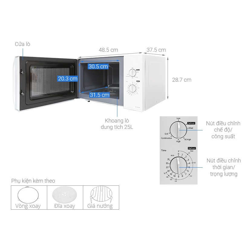 Kích thước khoang lò: Cao 20.3 cm - Rộng 30.5 cm - Sâu 31.5 cm