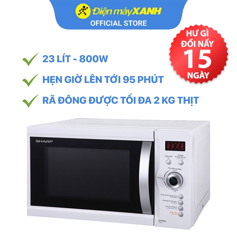 Thiết Bị Điện Gia Dụng > Đồ gia dụng nhà bếp > Lò vi sóng || [Mã ELMALL150 giảm 8% đơn 500K] Lò vi sóng có nướng Sharp R-G371VN-W 23 lít 800 W - Chính hãng BH 1 nămCòn hàng