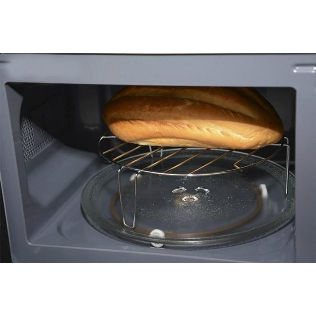 Ngoài nướng thực phẩm, người dùng dùng lò vi sóng Sharp để nướng các loại bánh như bánh gato, bánh mỳ... Đĩa xoay thủy tinh có đường kính 255mm, thanh nướng làm bằng chất liệu thạch anh cực bền, chịu nhiệt tốt.